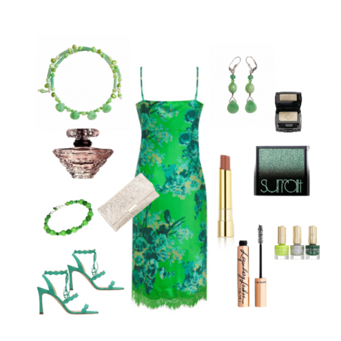 This choker set is comprised of very pretty chalcedony, jade, mother-of-pearl, crystal and freshwater pearl beads. The choker is expandable and does not have or need a clasp. It is quick and easy to put on and comfortably stays on, and the beautiful shade of green of this choker set will certainly add extra pizzazz to your outfit. The earrings in this set are approximately 2-1/4 inches long when measured from the very top of their silvertone leverback earwires.
