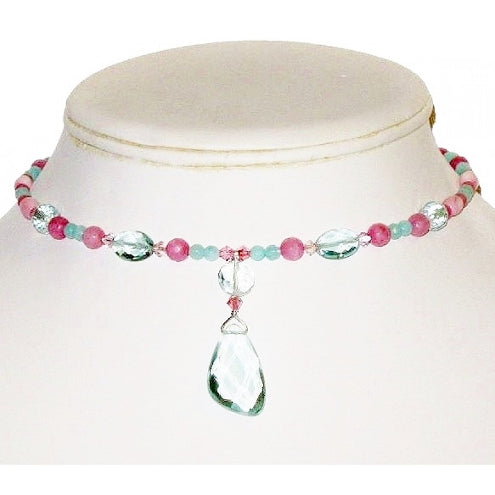 Aqua Quartz, and Pink Choker with Drop Pendant