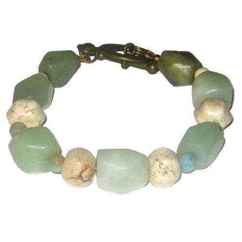 This bracelet measures 8-1/4 inches with its clock-style toggle clasp, and it consists of semi-precious beads, including jade and magnesite. Wearing it will add more swag to your look.