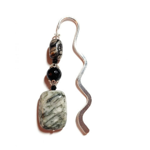 Black and Gray Beaded Bookmark with Rectangle Jasper Bead