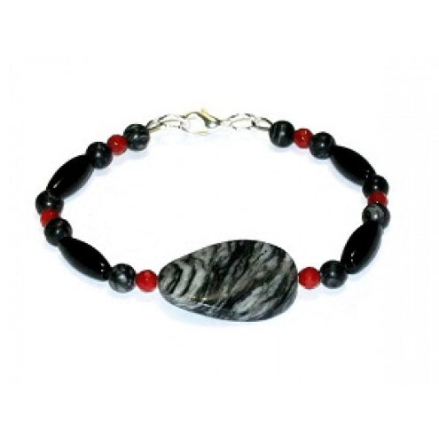 Black, Gray and Red Bracelet with Jasper Center Stone