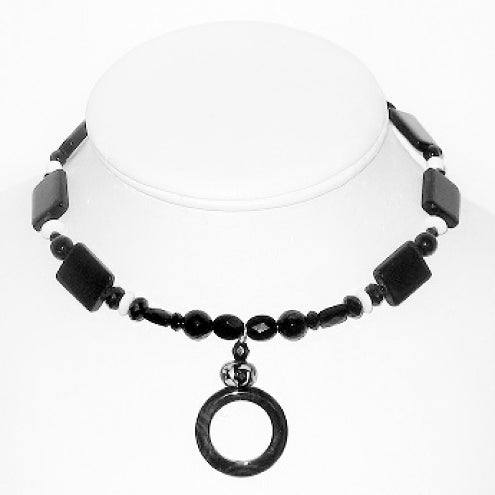 Black and White Choker with Black Onyx Donut Pendant