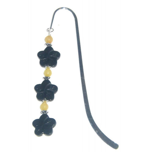 Black Flower Bookmark with Pale Yellow Jade Beads