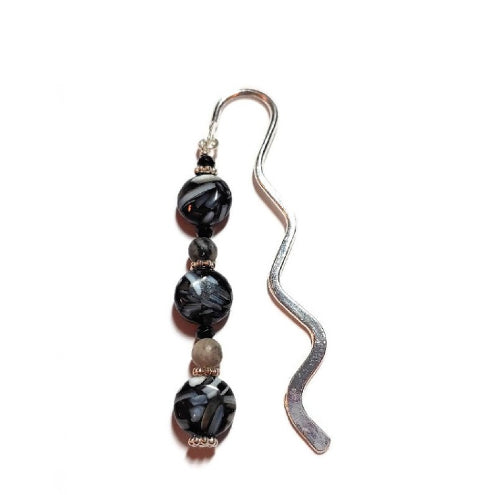 Black, Gray and White Beaded Bookmark