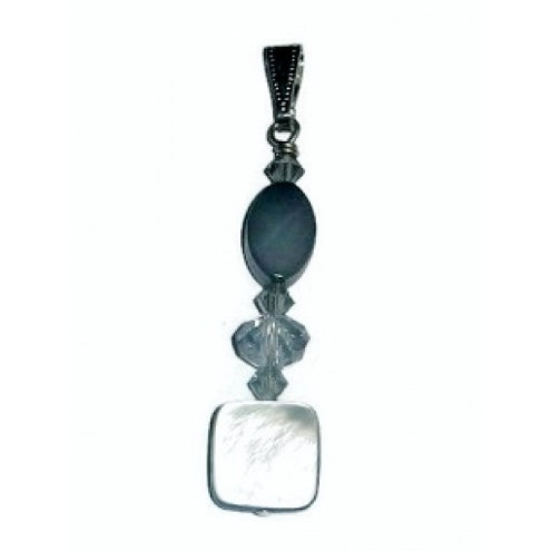 This pendant hangs 2 inches with its silvertone bail that you can attach to your silver chain necklace to change the look of it. Since it is a neutral color, it will match several pieces of clothing and can be worn with dressy or casual wardrobe items.