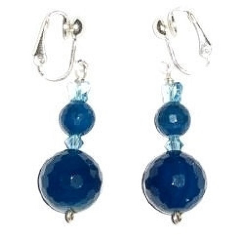 These earrings consist of Sardonyx beads and Swarovski crystals, and they hang 1 1/4 inches from silvertone earclips.