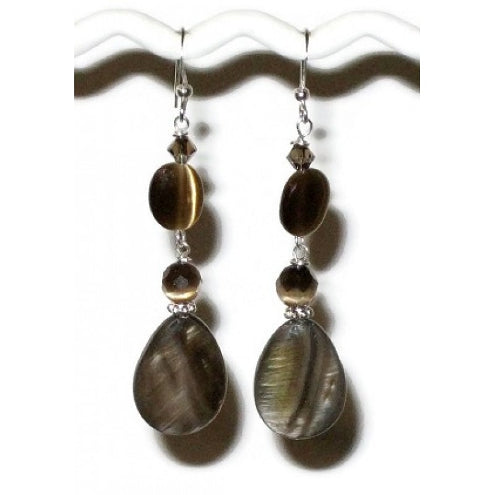 Brown Dangle Earrings with Pear-shaped Mother-of-Pearl Beads