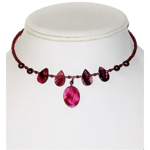 Burgundy and Plum Choker with Mother-of-Pearl Teardrop Beads