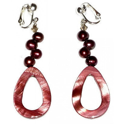 Burgundy Mother-of-Pearl Teardrop Earrings