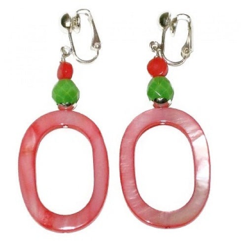 Coral and Green Oval Clip-on Earrings