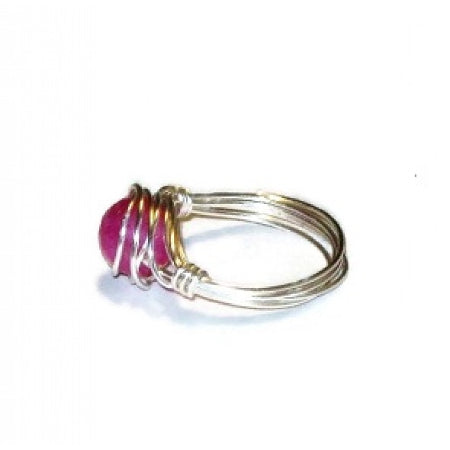 fuchsia faceted jade ring was wrapped using silver-plated non-tarnish wire. The