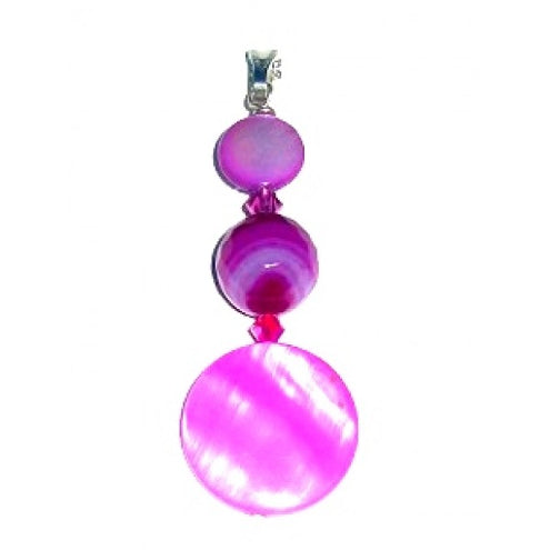 Fuchsia Mother-of-Pearl, Crystal and Sardonyx Pendant