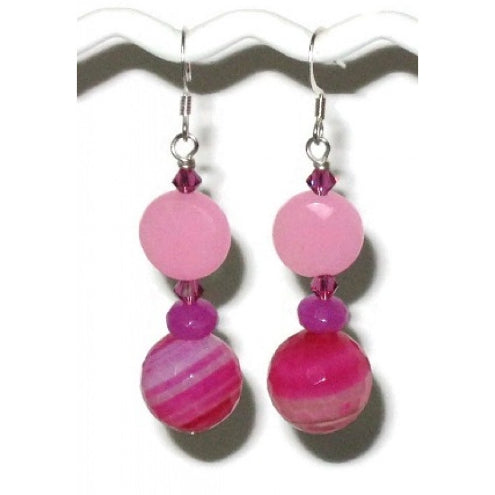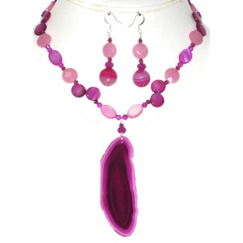 Fuchsia and Pink Necklace and Earring Set with Agate Pendant