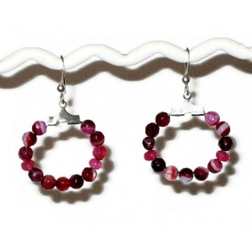 Fuchsia Sardonyx Agate Bracelet and Hoop Earring Set