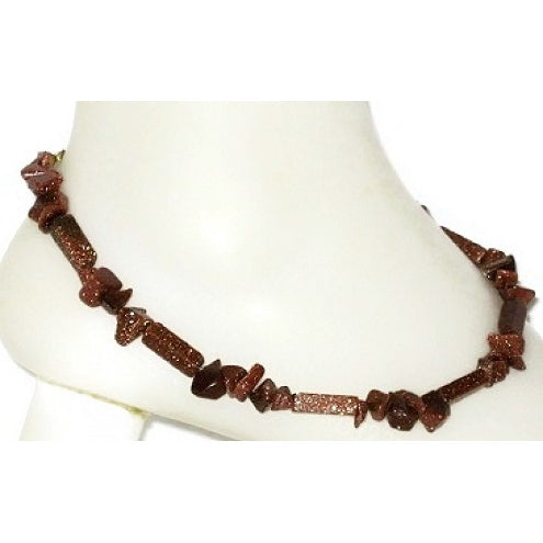 This ankle bracelet can be extended from 9 inches to 10-1/4 inches with its gold clasp and chain extender. It is made up of assorted goldstone beads.