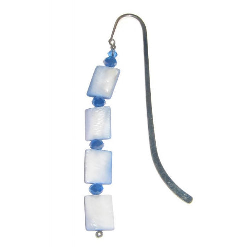 Light & Dark Blue Bookmark with Mother-of-Pearl & Crystals