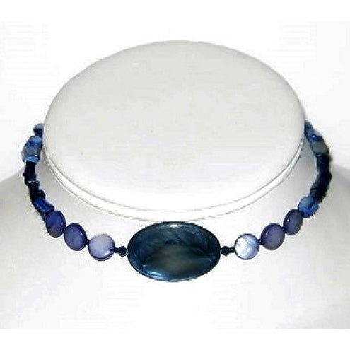 Navy Blue Mother-of-Pearl and Cat's Eye Choker