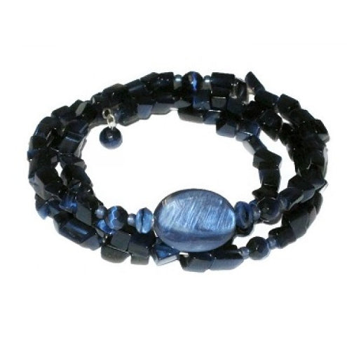 This wrap bracelet features an oval-shaped shell bead accented with chip beads and faceted glass beads.
