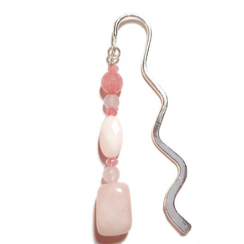 Pale Pink Beaded Bookmark with Rose Quartz Nugget