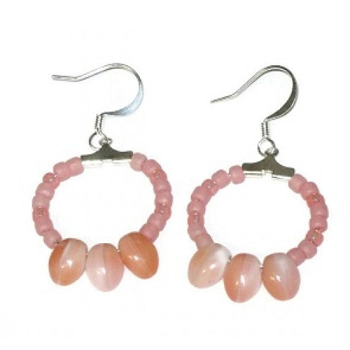 Peach Cream Petal Pink Coral Bracelet and Hoop Earring Set