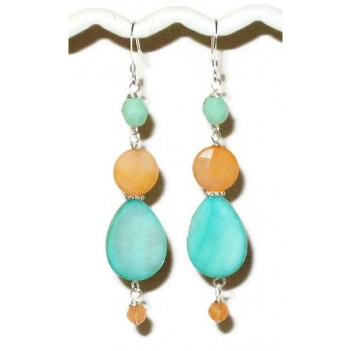 Add extra style to your wardrobe with these earrings. They contain mother-of-pearl faceted and smooth beads, faceted jade and czech glass beads. They have silver-plated earwires and measure approximately 2 5/8 inches.