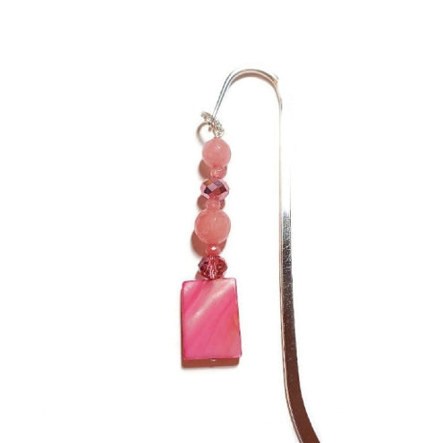 Pink Bookmark with Rectangle Mother-of-Pearl Bead