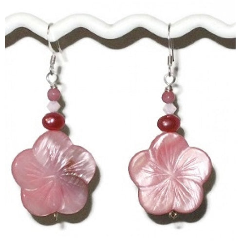 Pink Mother-of-Pearl Flower Bracelet Set