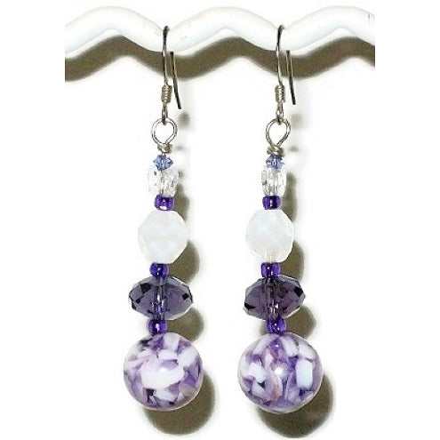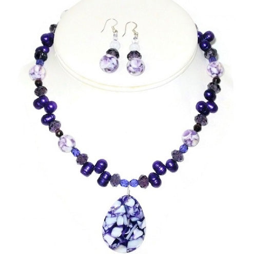 Purple and White Necklace and Earring Set with Briolette Pendant