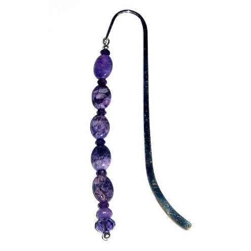 If you love to read books and have a collection of your favorites, why not have a collection of colorful bookmarks starting with this one? It is made up of crazy lace beads, jade beads, and a silvertone hook.