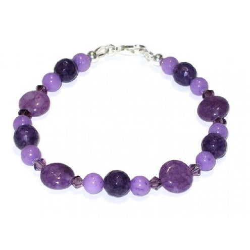 This bracelet consists of faceted and smooth jade beads and Swarovksi crystals. It has a silver-plated lobster clasp and measures 7 1/4 inches.