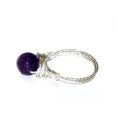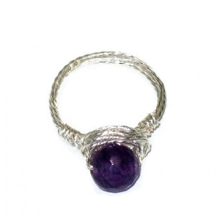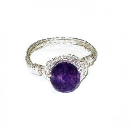 ring features an 8mm faceted jade bead wrapped with non-tarnish twisted