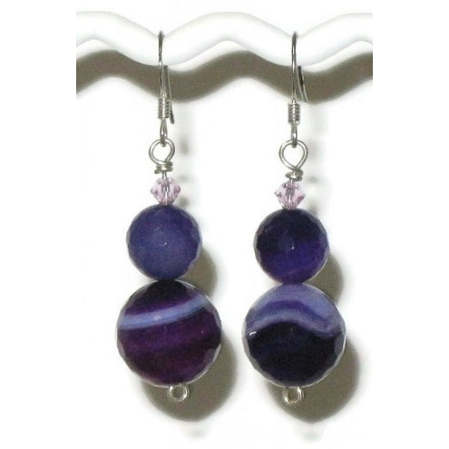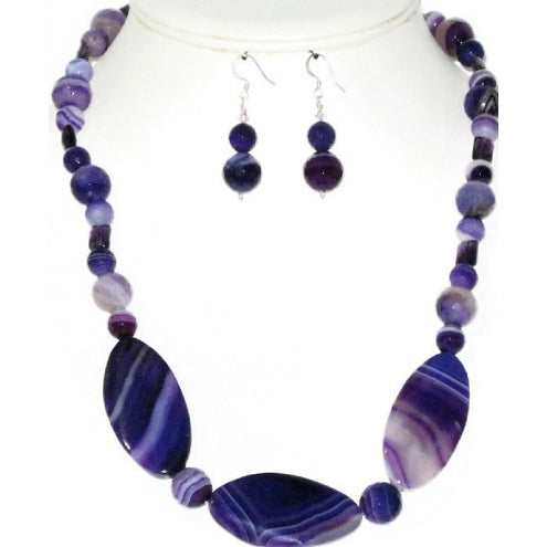 The necklace measures approximately 23 inches and consists of smooth and faceted Sardonyx agate beads along with faceted Czech glass. The matching earrings measure 1 7/8 inches starting from the top of the silver-plated earwires.