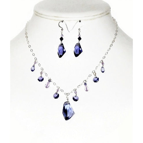 Purple Crystal Sterling Silver Necklace and Earring Set
