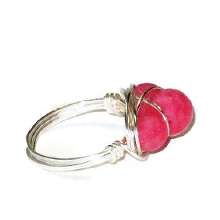 ring features three faceted jade beads wrapped in non-tarnish silvertone