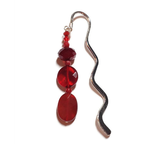 Red Beaded Bookmark with Faceted Oval Quartz Bead