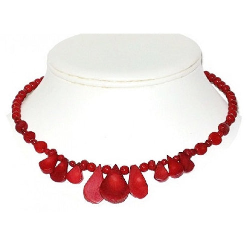 Add that extra flare to your look with this red coral bamboo choker. It is made on expandable wire and features red coral bamboo smooth teardrop beads in the center accented with assorted red coral semi-precious beads.