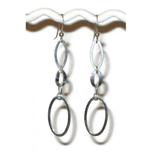 These earrings has a combination of 3 different oveal-shaped components for added style. They hang on sterling silver earwires and measure in full length approximately 2 3/8 inches.