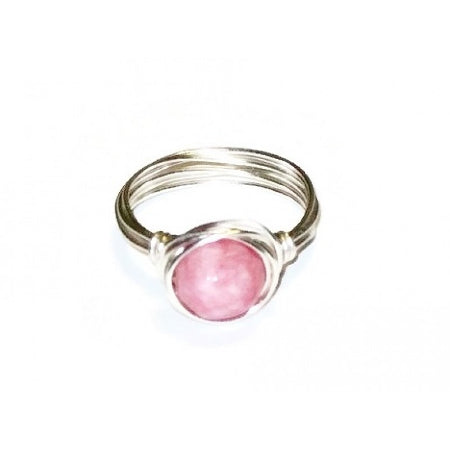 Complete your pink fashion look with this faceted jade ring that is made with non-tarnish silver-plated wire. This ring is a size 7 1/2.