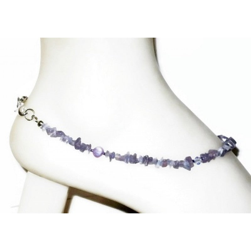 delicate anklet is made up of tanzanite semi precious chip beads, freshwater