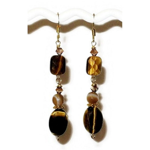 and smooth tiger eye beads, as well as faceted agate beads. They measure 2 3/8 inches starting from the
