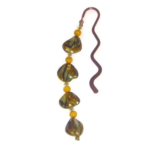 Yellow and Black Zebra-Print Bookmark with Zigzag Coppertone Hook