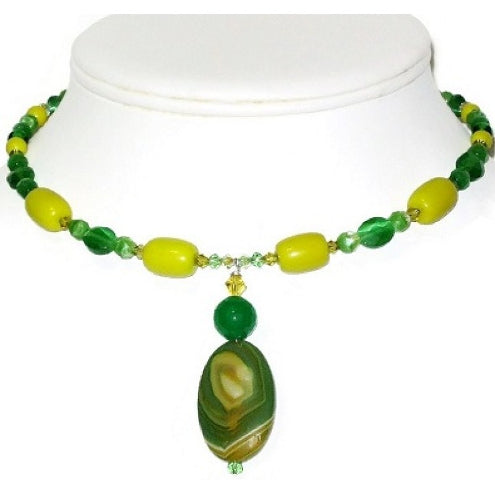 Green and Yellow Choker with Agate Pendant