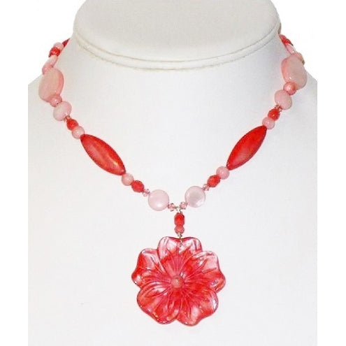 Coral and Pink Necklace with Mother-of-Pearl Flower Pendant