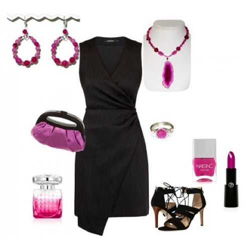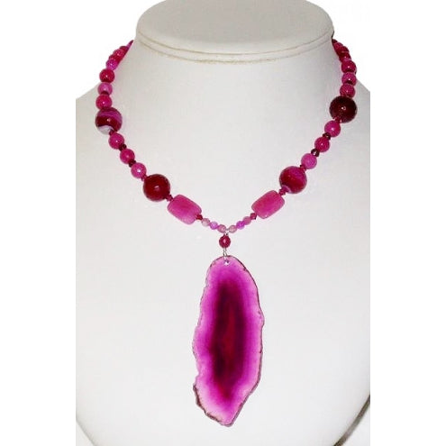 Fuchsia Necklace with Agate Pendant