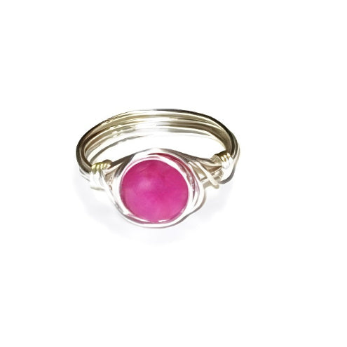 fuchsia faceted jade ring was wrapped using silver-plated non-tarnish wire. The