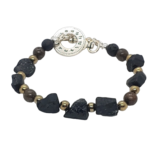 Elevate your wrist game with this men's beaded bracelet crafted with tourmaline, hematite and bronzite semi-precious stones. It measures 8 inches with its silvertone clock-shaped toggle clasp that adds a touch of contemporary flair to your everyday style.