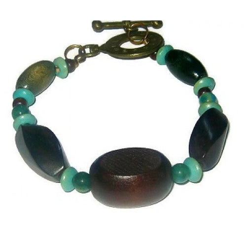 This bracelet is 7-3/4 inches with its clock toggle clasp, and it is comprised of wood, jade and tiger ebony wood beads. It will give a nice finishing touch to your wardrobe.