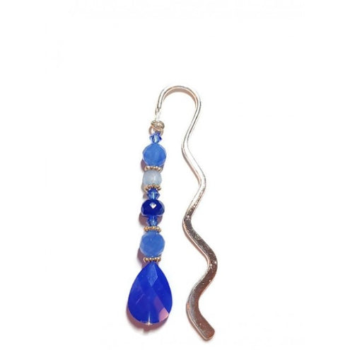 Light and Dark Blue Jade and Crystal Beaded Bookmark with Faceted Teardrop Bead