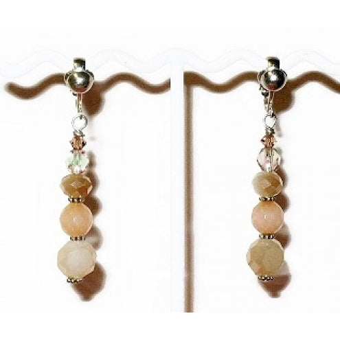 These clip on earrings are lightweight and are 2 inches long with silvertone earclips. They consist of crystal, Czech glass and jade beads, The beads are all faceted, which makes them sparkle as light hits them.