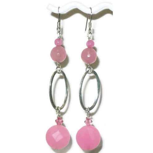 Pink Jade Sterling Silver Dangle Earrings